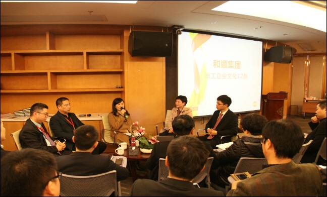會議上午議程的主題是“2015年度年度工作總結及2016年度工作展望”,各部門、分子公司的領導、同仁作了簡要的工作匯報。下午議程的主題是企業(yè)文化論壇,分為“和順員工職務行為準則”和“和順員工企業(yè)文化12條”兩部分進行。論壇上,作為公司新老員工代表的曾立群、聶喆、周蓉、盧文斌先后與大家分享了對公司企業(yè)文化的理解,副總裁龍小珍以《和順員工企業(yè)文化12條》掀起了年會高潮。最后,集團董事長趙忠做了意義深遠的總結發(fā)言,勉勵大家努力拼搏、共創(chuàng)和順美好未來。