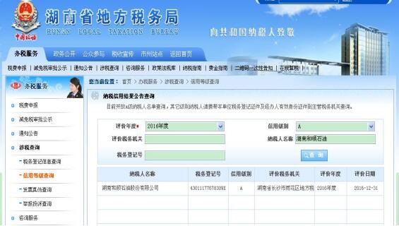 為推進(jìn)社會誠信體系建設(shè),湖南省國稅局、地稅局按照國家稅務(wù)總局《納稅信用管理辦法(試行)》(總局公告2014第40號),開展了2016年度納稅信用聯(lián)合評價工作,我司再次獲得納稅信用“金字代言——A級納稅人”的稱號,我司已連續(xù)三年獲此榮譽(yù),展現(xiàn)了誠信納稅的良好企業(yè)形象。